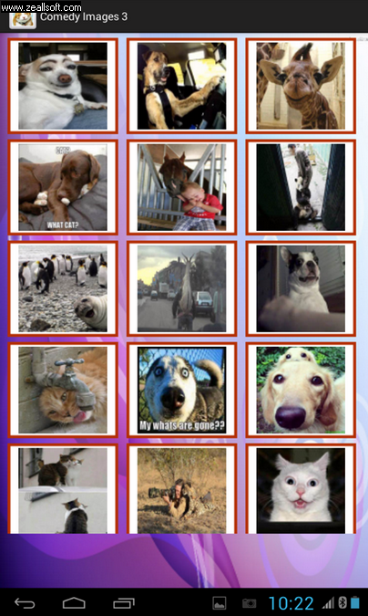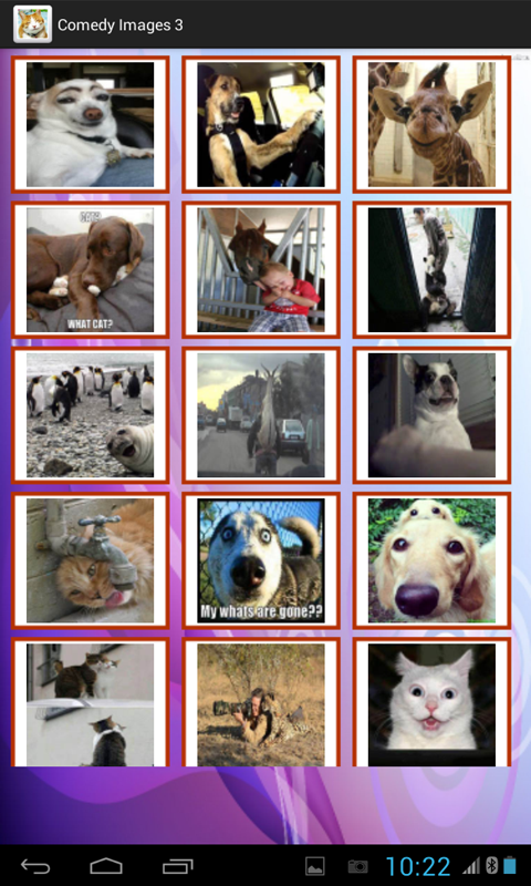 The application contains a large collection of Funny animals pictures . that you can share via Facebook and WhatsApp and other social networking Apps.