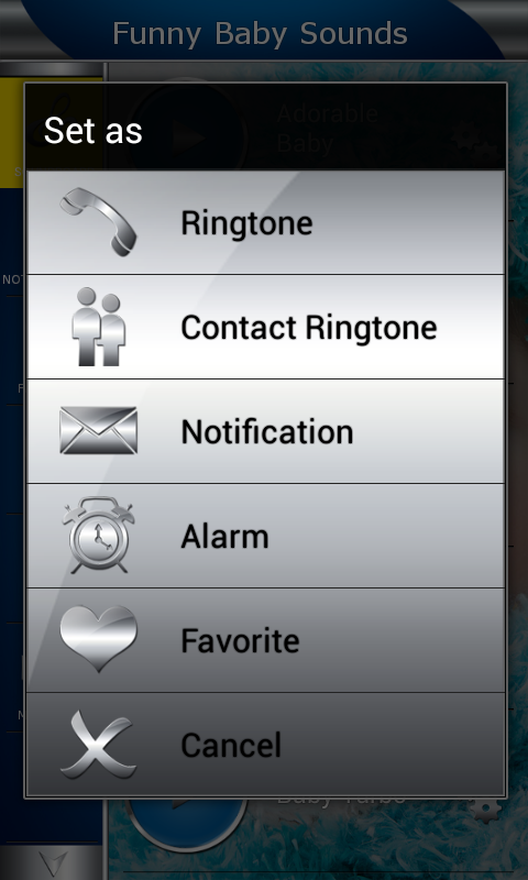 If you love adorable babies and sweet baby voice, then our Funny Baby Sounds app for Android™ is perfect choice for you. This app contains the most downloaded funny baby sounds and ringtones gathered together in one easy to use free popular application. You can take funny baby laughs, cute kiss or jingle baby sounds, and use it as funny ringtones, funny sms or alarm. Make your phone unique and more interesting then any other with this funny baby app.
