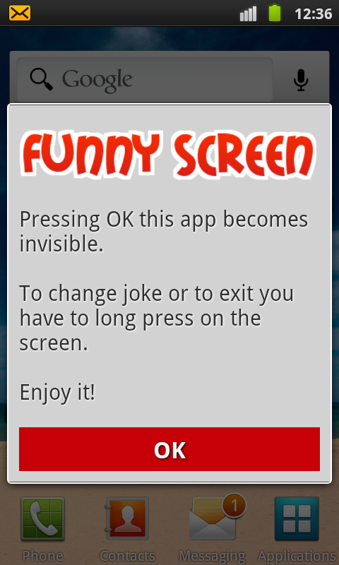 This app is invisible. The screen of your device will look normal but just tap the screen and appear suddenly a funny joke.