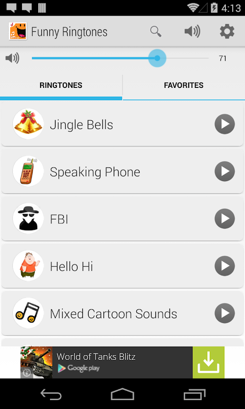 This version of Funny Ringtones Android App comes with one universal variant which will work on all the Android devices.