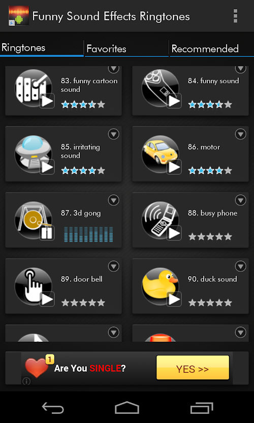 Funny Sound Effects Ringtones contains hi quality and loud sounds of funny ringtones and sound effects. Some of these funny sound effects are guaranteed to make you smile and laugh. Enjoy these funny ringtones with the best ringtone app!