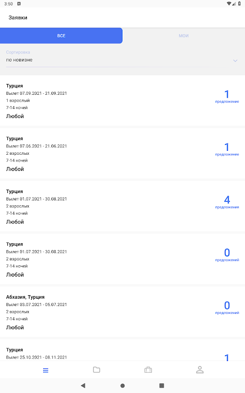 • Клиенты отправляют вам заявки на туры, указывая один или несколько важных параметров.