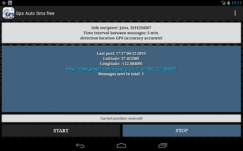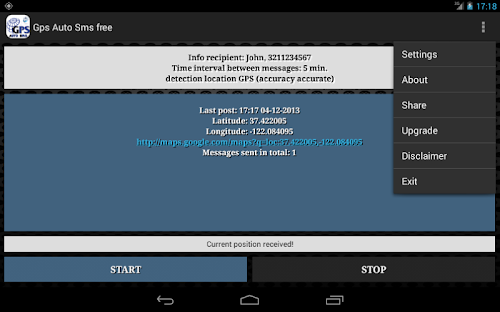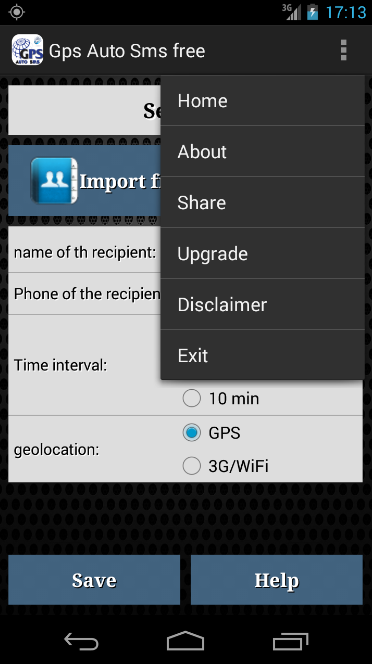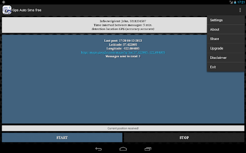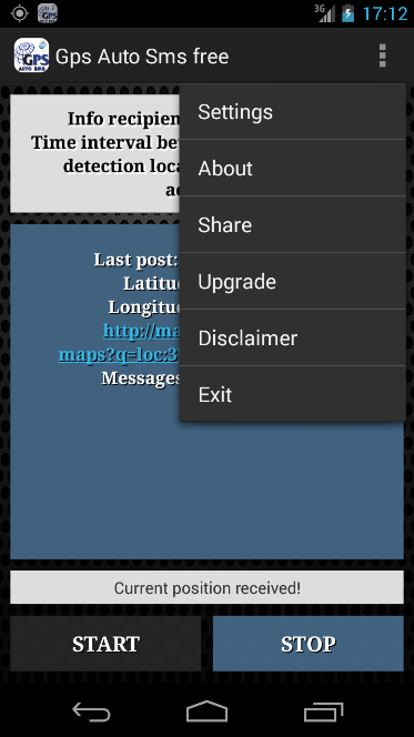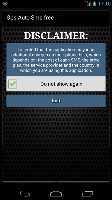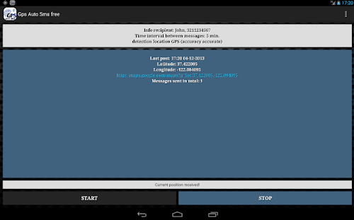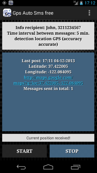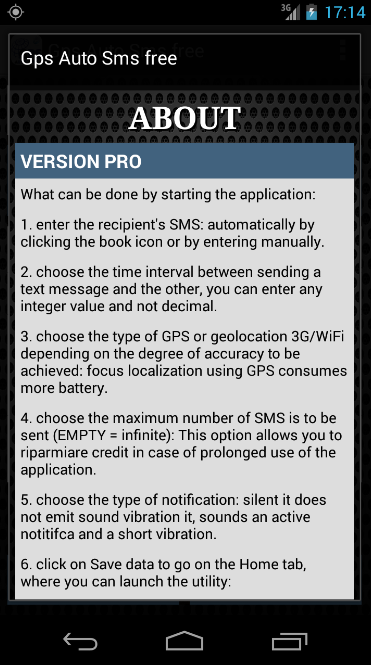 GPS Auto SMS Free is a free but limited , in fact : it has pre-set time intervals , not notifications can be switched off and you can not set a limit of SMS to be sent .