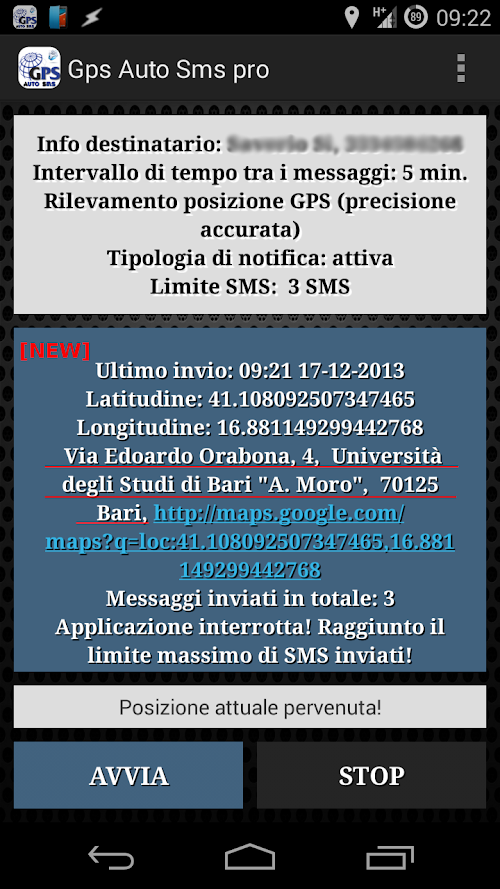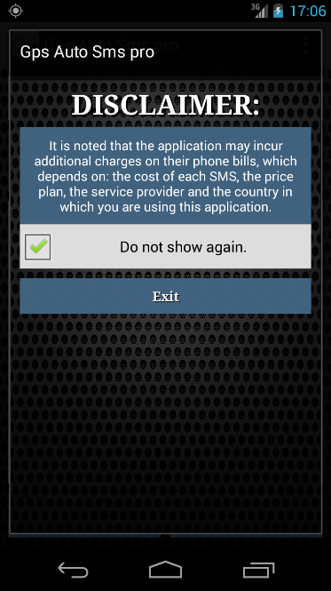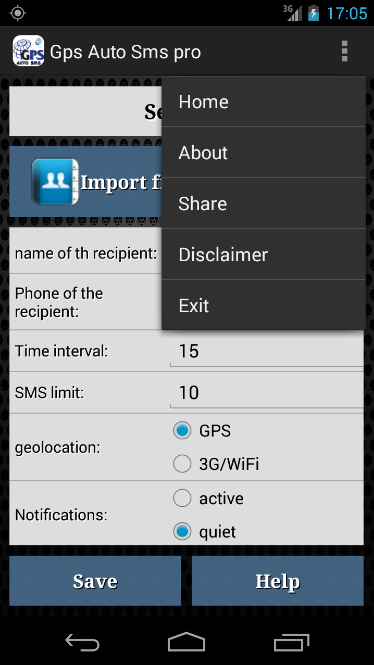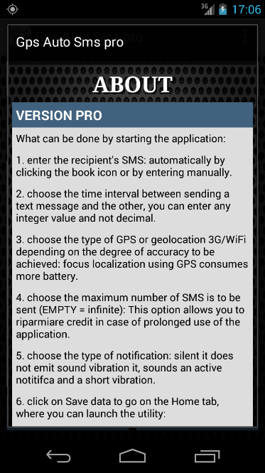 GPS Auto SMS Free is a free but limited , in fact : it has pre-set time intervals , not notifications can be switched off and you can not set a limit of SMS to be sent .