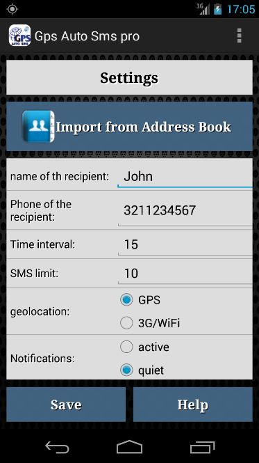 GPS Auto SMS was born with the aim to send your location to a specific recipient , using regular interval of time . for sending text messages .