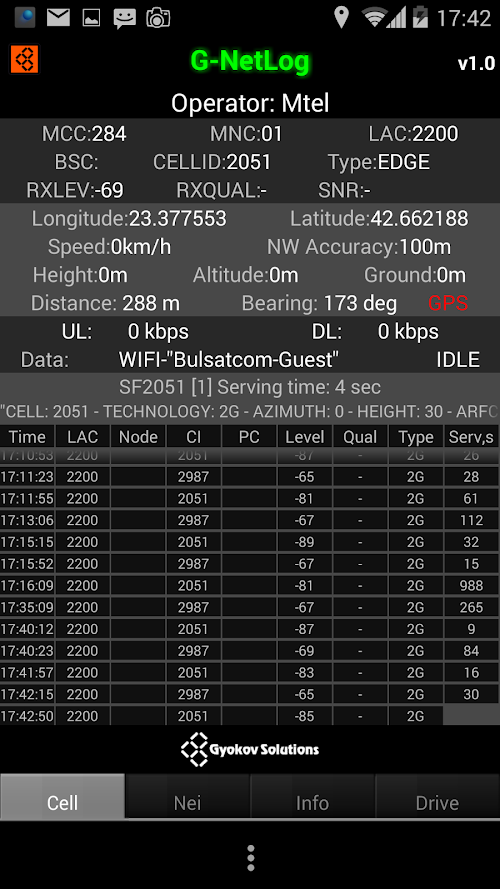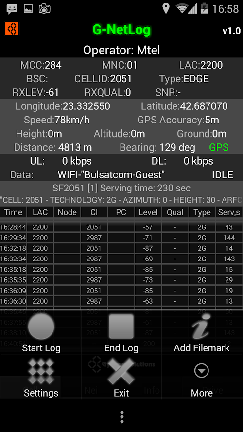 Measurements are written in text and kml logs. They are located in folder G-NetLog_Logs.