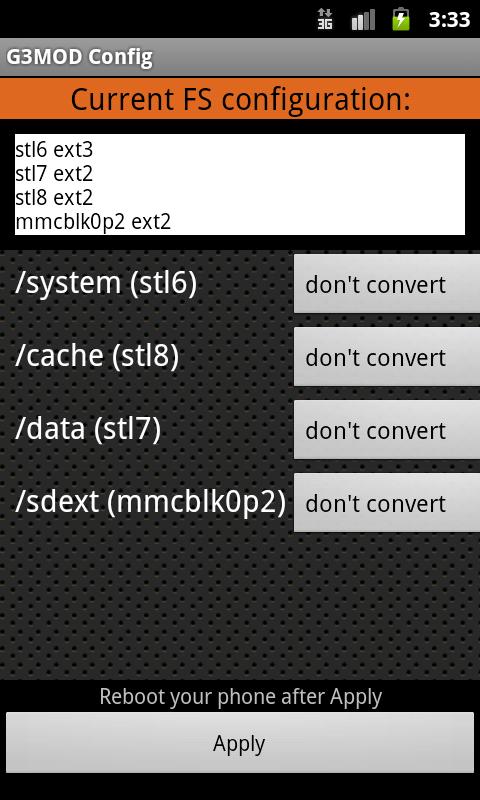 This version of G3MOD Config for Samsung I5800 Android App comes with one universal variant which will work on all the Android devices.