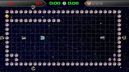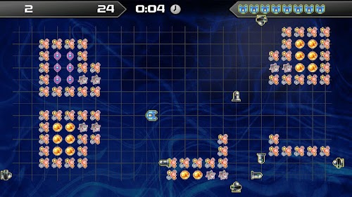 Player controls space vessel and collects different items to complete different maps. Actual version of Galactic Miner has two different modes for controlling - swipe and virtual buttons. Game has two tutorial levels, 22 training levels and 10 mission - each mission consist of 10 levels, which are played continuosly.