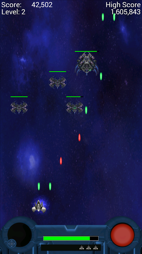 o On Screen Control. Control the star fighter with an on-screen joystick and fire button for an old school classic arcade style experience. Configurable for right or left handed players.