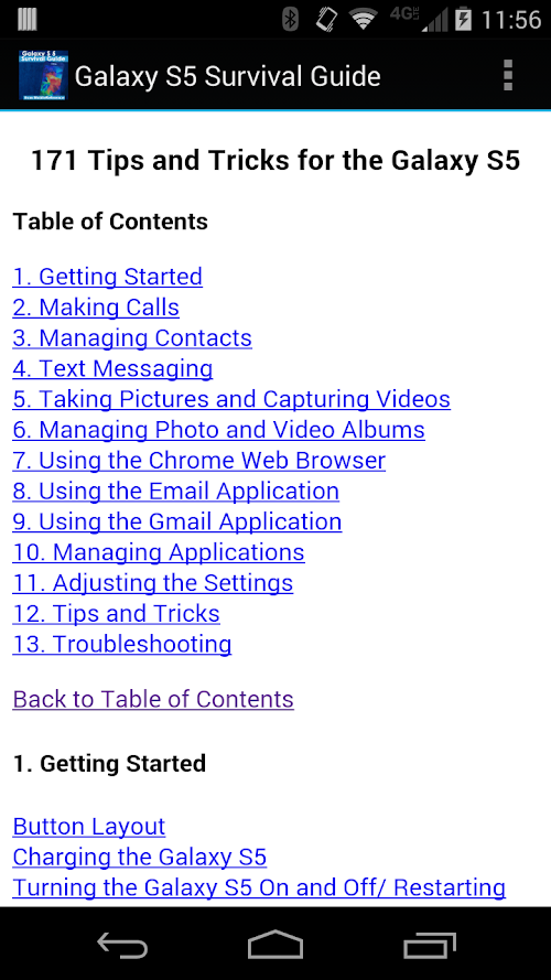 Learning which buttons perform which functions is useless unless you know how it will help you in your everyday use of the Galaxy S 5. Therefore, this guide will teach you how to perform the most common tasks. Instead of presenting arbitrary instructions in lengthy paragraphs, this book gives unambiguous, simple step-by-step procedures. Additionally, detailed screenshots help you to confirm that you are on the right track.