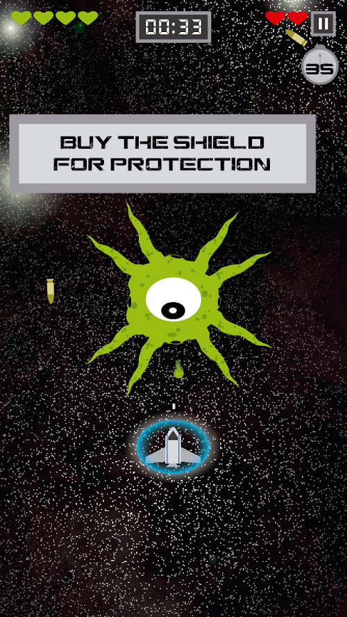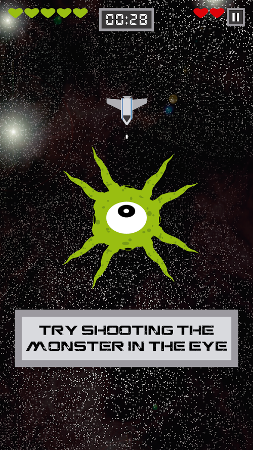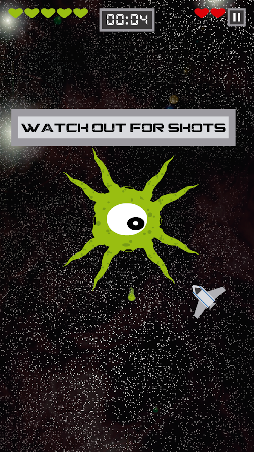 Tilt your device to change your spaceship direction and escape from the monster's shots.