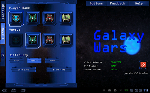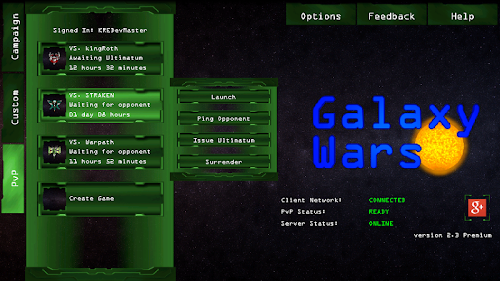 - Linked to Galaxy Wars Google+ Community from Main Menu and Feedback panel
