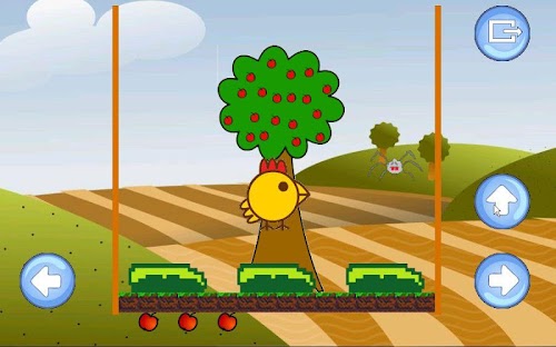 Juego para niños en el que una gallina, la gallina feliz, debe hacer caer las manzanas de un arbol para comerlas y poder crecer.