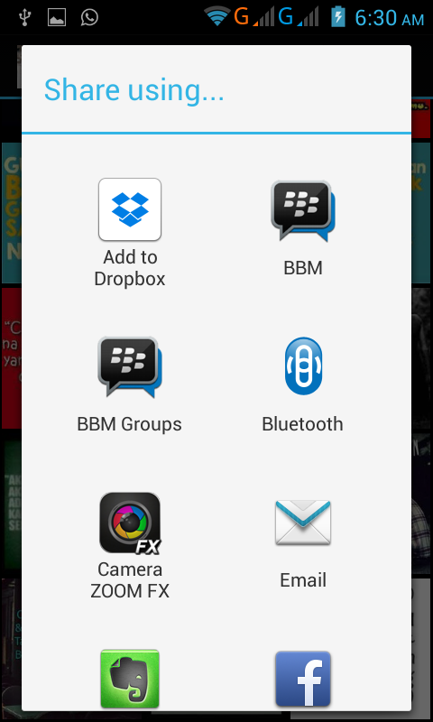 * Sharing/Copy to BBM android.