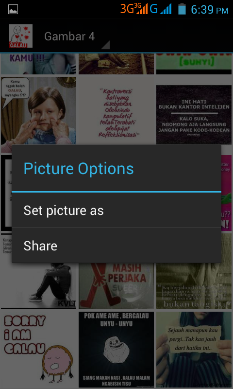 gambar bisa dishare lewat Facebook, twitter, BBM, WhatsApp biar temen loe tau klo loe baru galau,,