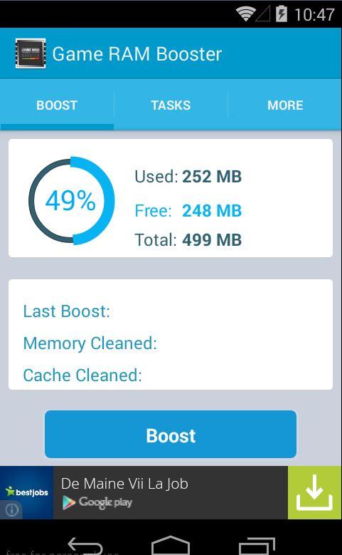 The new Android app features the fastest Ram booster and performance manager in Store Play. It is very simple to use, small in size and works almost in any android phone. It also covers less space in Android device’s memory. In addition, it displays usage stats and is very easy to understand and use.