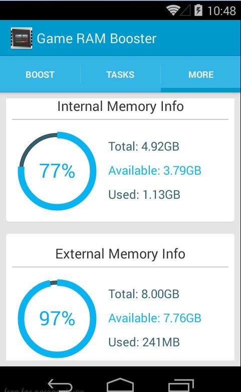 Free memory level is the main factor that affects how fast system runs. Game RAM Booster shows you real-time free memory level, and provides a live chart to demonstrate how memory changes. It aims at enhancing system speed by resolving memory issues on Android devices