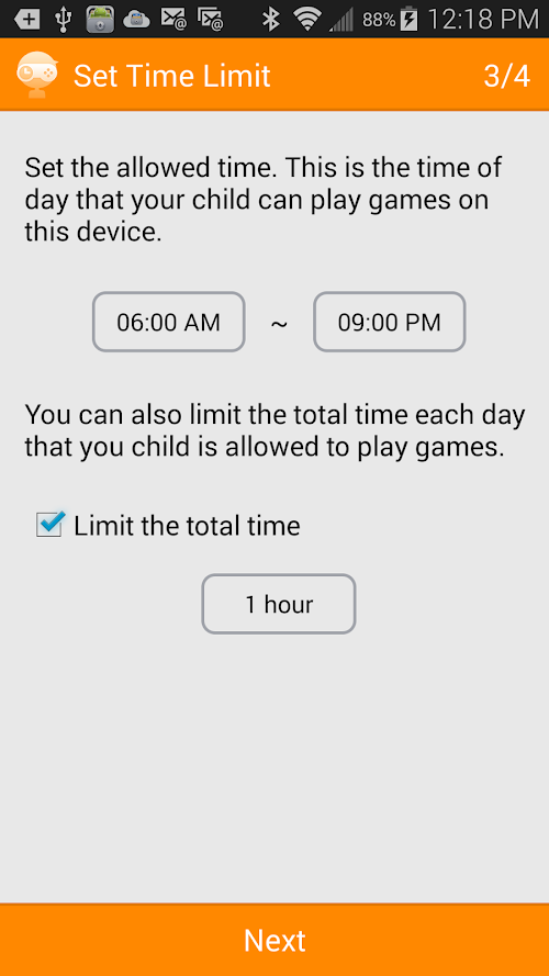 Quickly and easily place limits on when and how much time you child can play games on Android phones and tablets. GameTime automatically identifies all the installed games on the device for easy management of your child's game playing time.