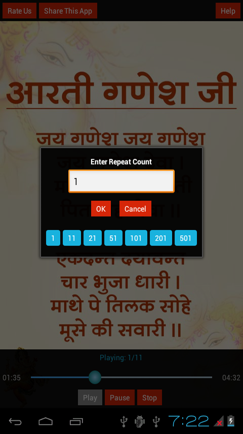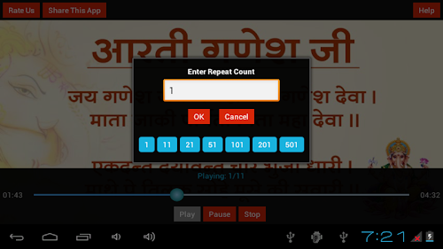8. Feature to Repeat the Aarti as many times as you want.
