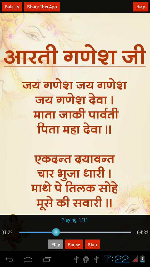 This Application is Completly Devoted to Lord Shri Ganesh contains ganesh aarti in Hindi Language with Audio.