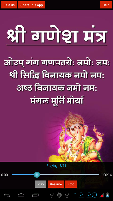 This Application is Completly Devoted to Lord Shri Ganesh contains Ganesh Mantra in Hindi Language with Audio.