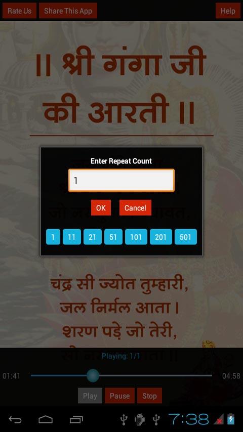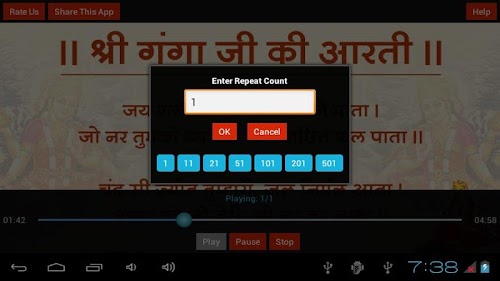 This version of Ganga Aarti, Repeat Option Android App comes with one universal variant which will work on all the Android devices.