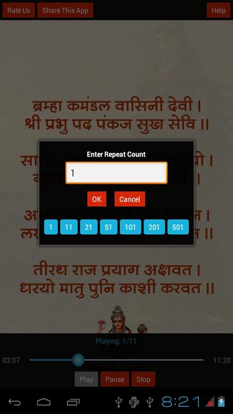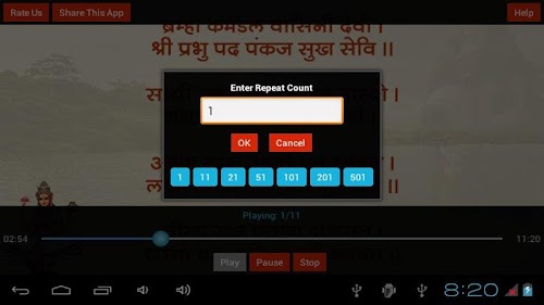8. Feature to Repeat the Chalisa as many times as you want.