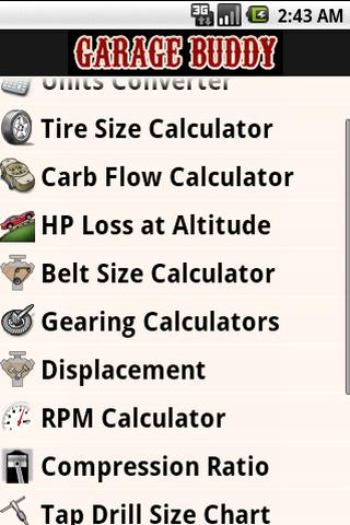 -Want to know what size carb to put on your new V8? Punch in a few numbers and Garage Buddy will tell you what CFM you'll need!