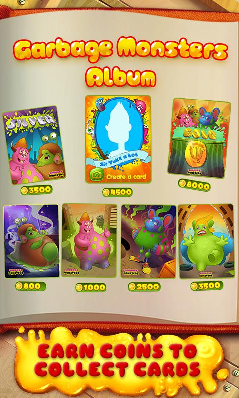Earn coins after each treatment and collect as many monster cards as you can! Create an awesome Garbage Monsters Album and take a photo with it! Collect all the cards for the complete Garbage Monsters Collection!