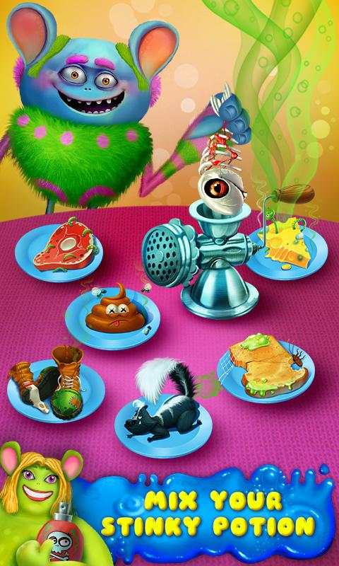 Meet the Garbage Monsters! The most adorable monsters ever! Oh no! Hairy Jerry, Polka Dot, Stench-It-All-Joel, and Slimy Sam need messy makeovers! Help these lovable monsters feel like themselves again when you give them messy makeovers with icky treatment tools! Make your own stinky stench and fix broken bones with the X-ray machine. You can even use the slime blaster to cover the monsters in green slime! EWWW! So gross, but so much fun!