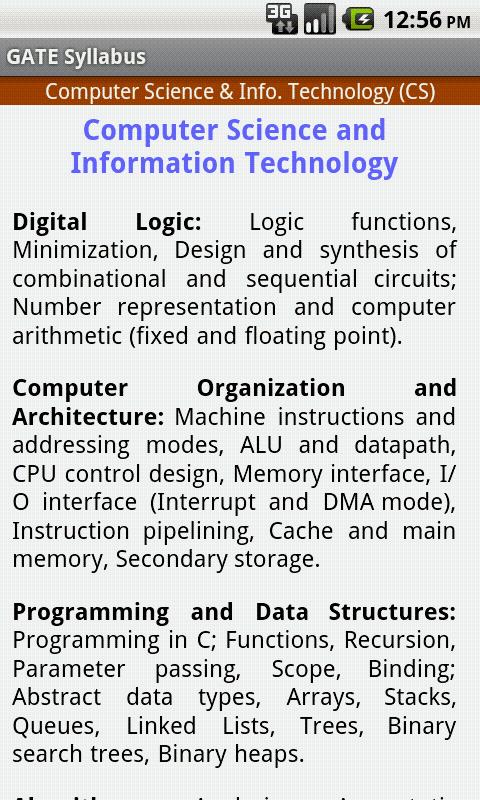 Application is developed to make the syllabus copy available OFFLINE for the students & professionals appearing for GATE exam.