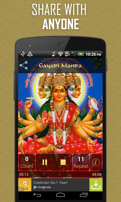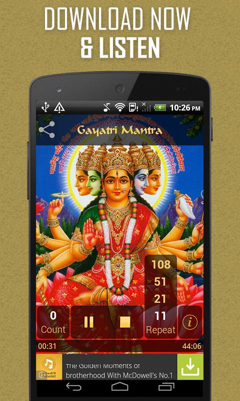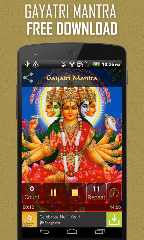 You can set this app to repeat the Gayatri Mantra 11, 21, 51 or 108 times.