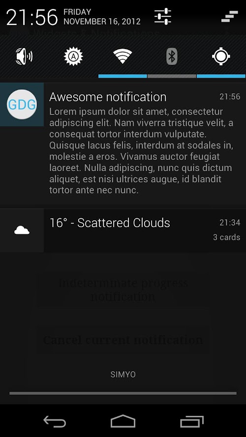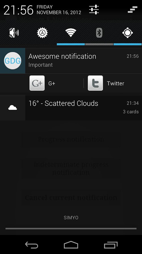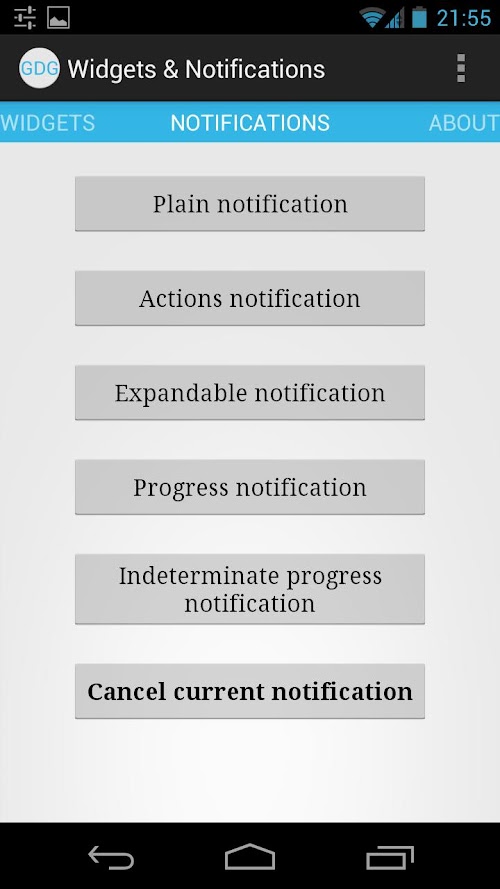This version of GDG Widgets and Notifications Android App comes with one universal variant which will work on all the Android devices.