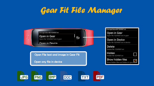 + Open document and picture file right on Gear Fit. Support .txt, .doc. pdf, pnd, bmp, jpg file