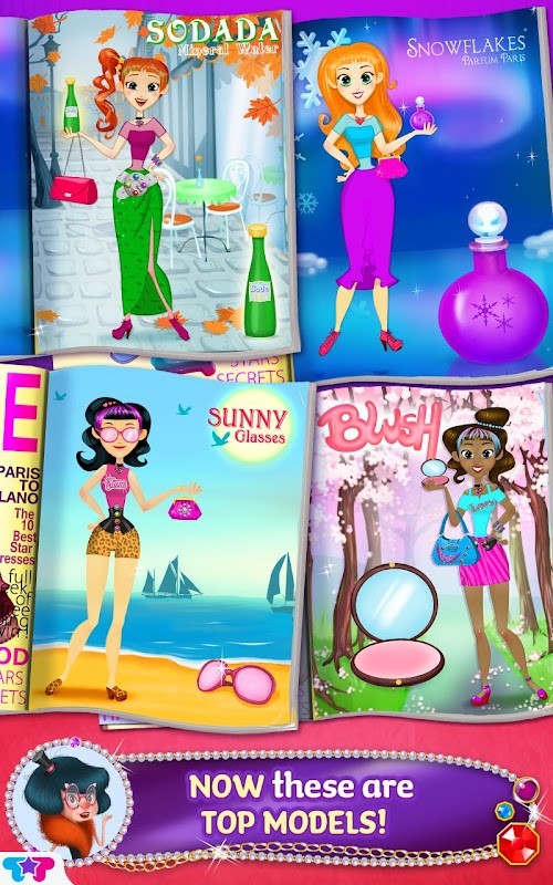 Get creative with tons of design and style activities! Create stylish outfits for your top model and customize her look. You can even design your own dazzling accessories and highlight your models’ bangs in awesome colors! Once your model looks perfect, head on over to the studio where you can see her starring in the hottest ads!