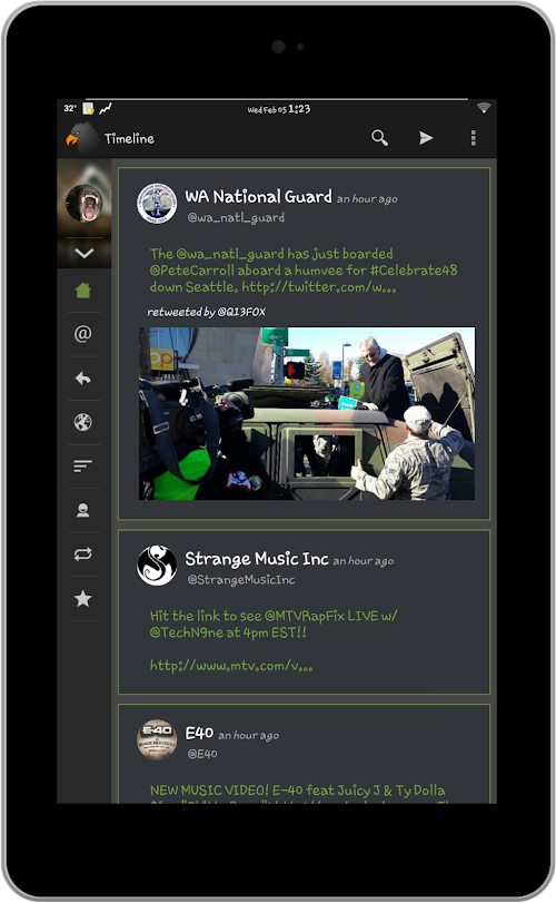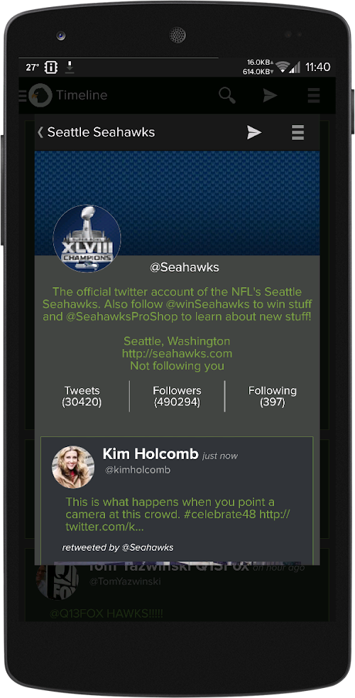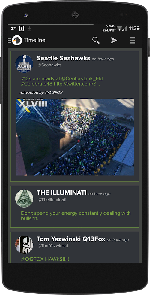 This is a theme for Talon for Twitter that is dark grey with beautiful mint green accents.