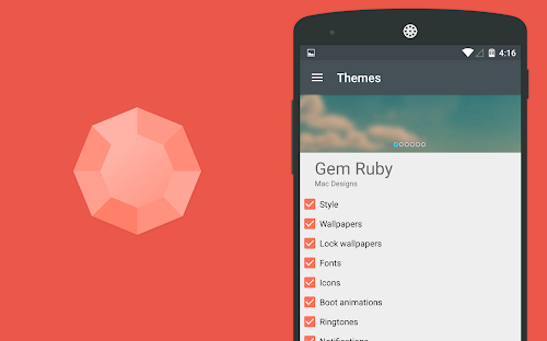 Gem Ruby is simple and clean - influenced by today's modern, 2-dimensional, or "flat" designs. As with all my themes, Gem provides so much more than a few color changes. With this theme, you will find a high quality look with an attention to detail that is hard to find elsewhere! This theme was designed using and to work best with CM12 and the Cyanogen's new theme engine.