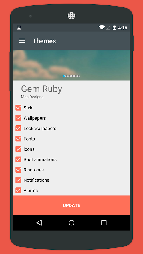 This version of Gem Ruby CM12 Theme Android App comes with one universal variant which will work on all the Android devices.