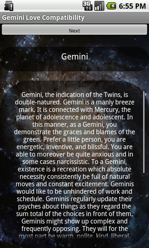 If you are looking to download other versions of Gemini Love Compatibility Android App, We have 1 version in our database. Please select one of them below to download.
