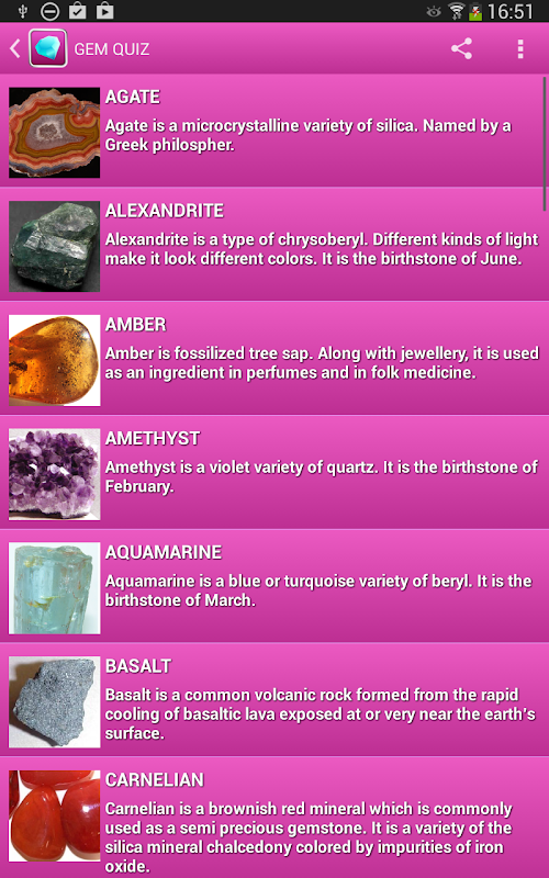 Photos and interesting facts of all your favourite gemstones and rocks.