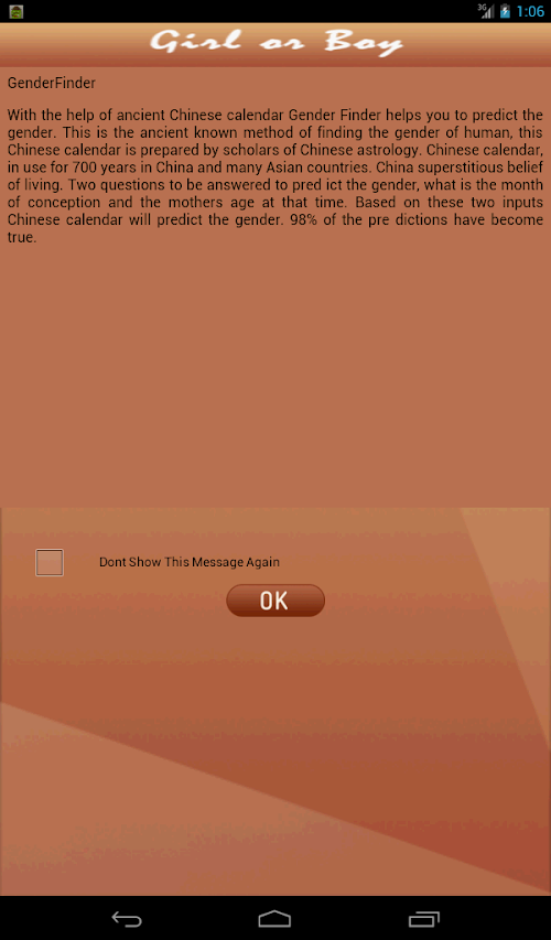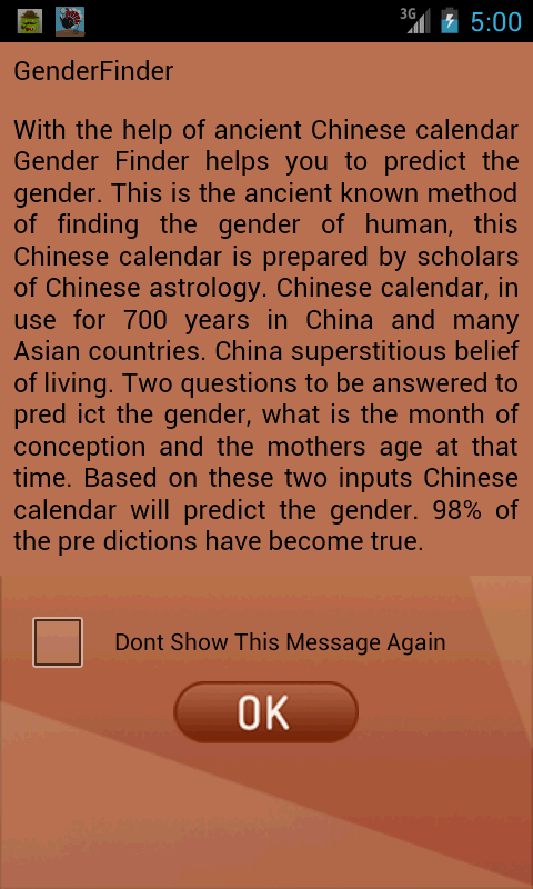 With the help of ancient Chinese calendar Gender Finder helps you to predict the gender.
