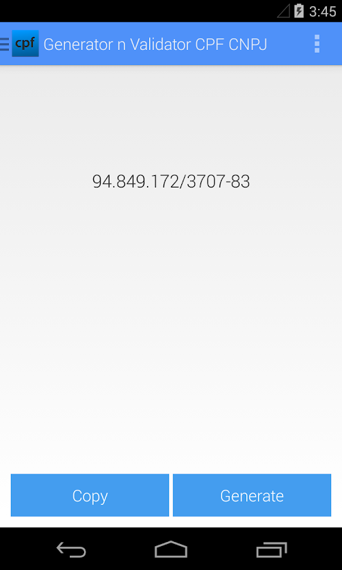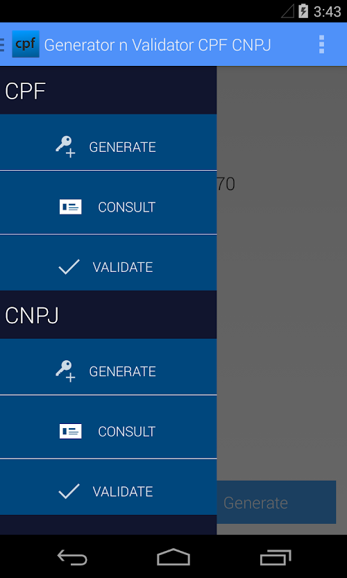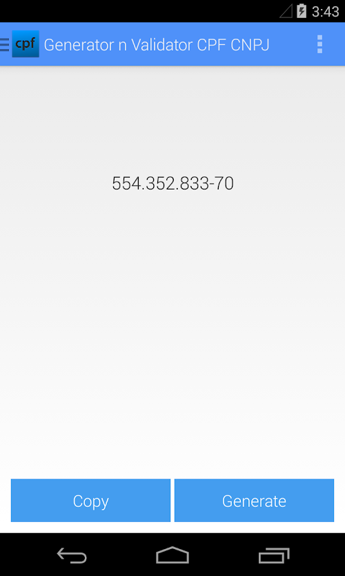 A Simple and practical app for who wants verify if a CPF is valid or not. The app also can generate valid CPFs and do searches on database of government.
