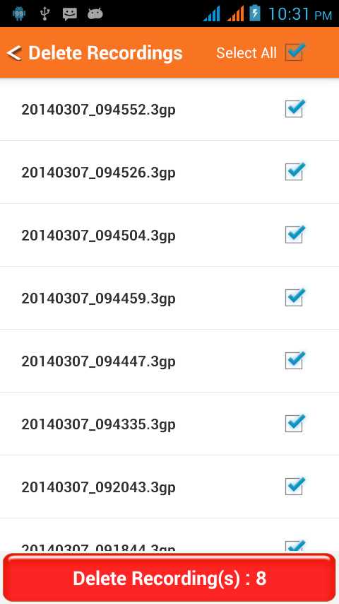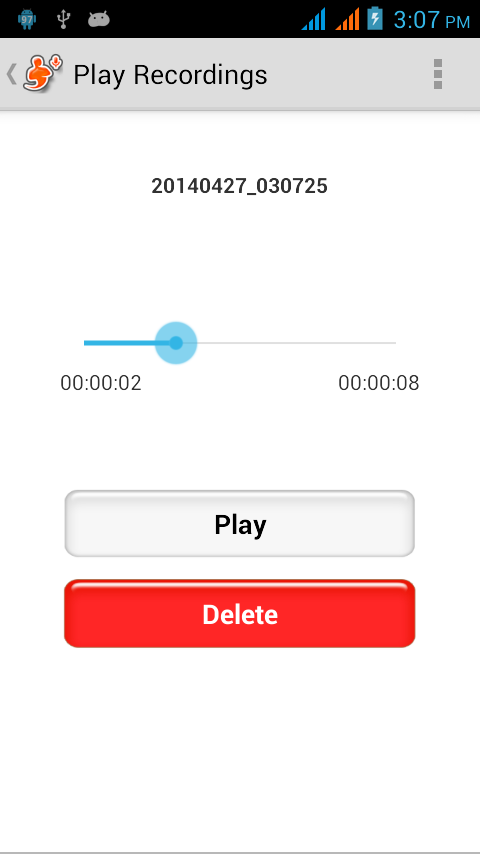 ✓. Listen recording or delete it.