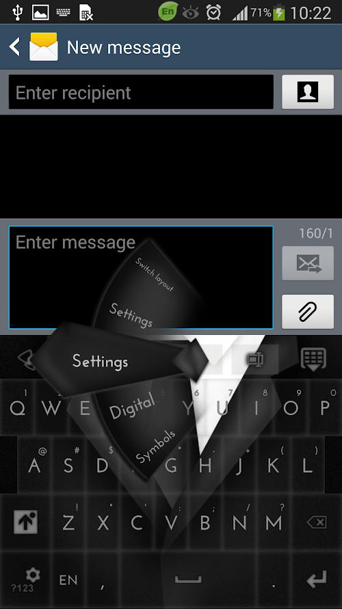 This version of Gentleman Black Suit Keyboard Android App comes with one universal variant which will work on all the Android devices.