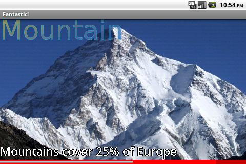* Slideshow Mode displays all the photos and facts in alphabetical order