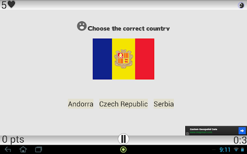 Geo L contains several game modes, for example the capital you have two modes "one flag three capitals" that enables you to try to recognize the capital after the flag, "one capital three flags" that the share of assume that you have three flags and capital, and you must find the corresponding flag in the capital, all to enable you to memorize by requesting your visual memory.