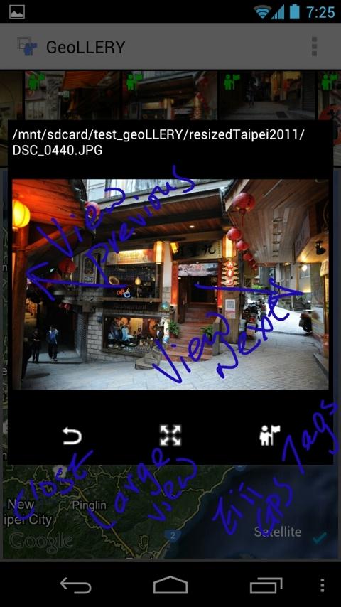 - Tap on the markers/Long touch on the photos will open the photo in bigger view.