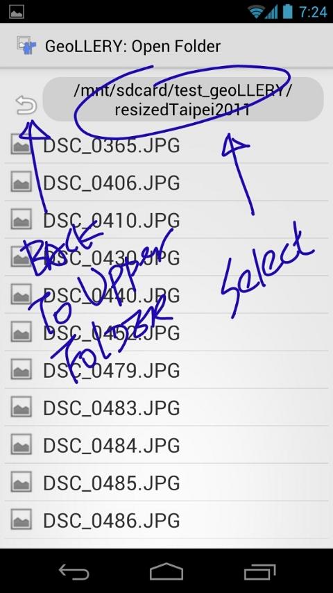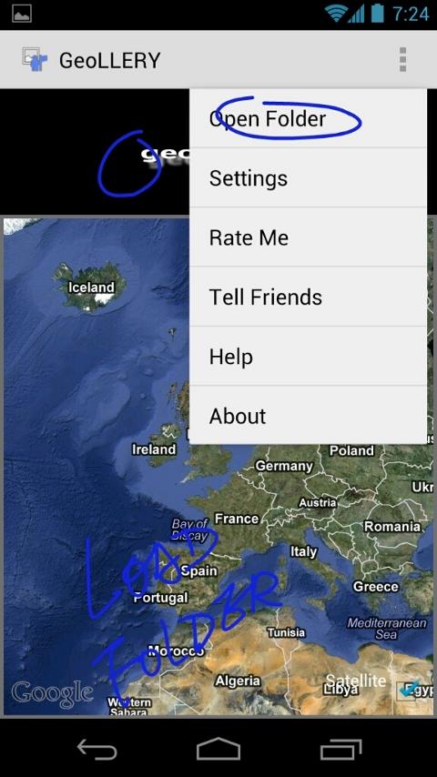 - Click MENU -> Open Folder to load files. The location embedded in JPG's Exif will be marked on Map.