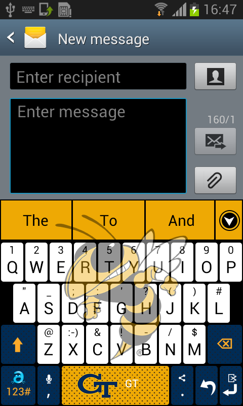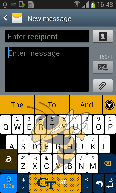 *Graphically rich Old Gold and White theme keyboard with the Georgia Tech logo