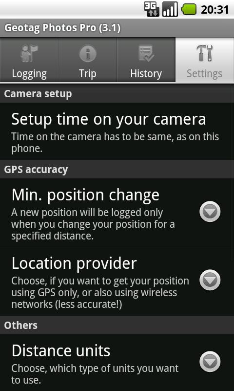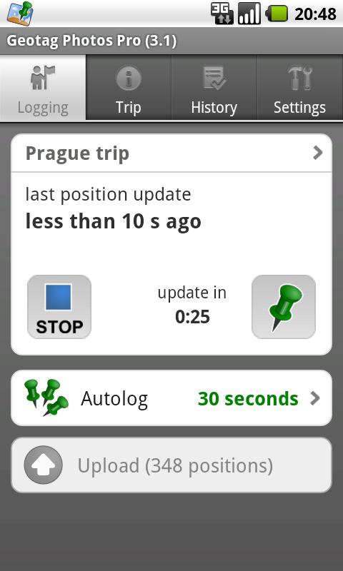 When you return from your trip, you can synchronize logged data with our desktop application and geotag photos taken by your camera. We support both amateur cameras (compact) and professional ones (DSLR). We also supports geotagging of various RAW formats (.NEF, CRW, CR2 and others). You can also export your logged data to well know and widely used GPX format - in this new version is NOT NECESSARY to upload data to remote server, you have your GPX files always prepared and can find them on phone memory card or you can send them from Android phone by email.